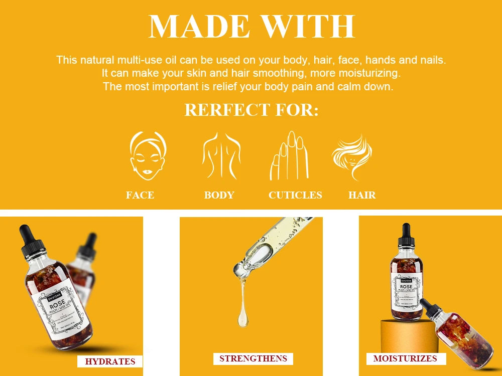 ENVISHA Beauty Rose Body Oil Essential SPA Massage Moisturizer Fresh Floral Petals Nourishing Moisturizing Skin Care Anti-drying